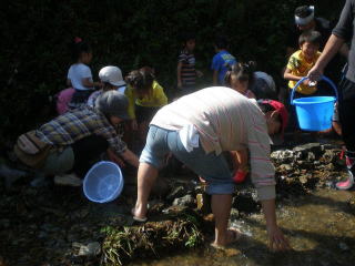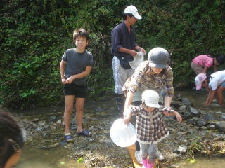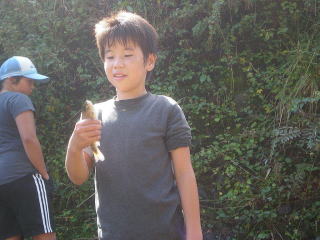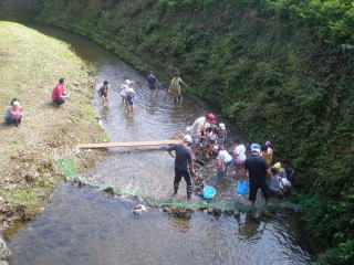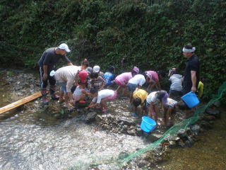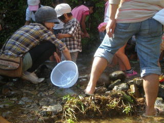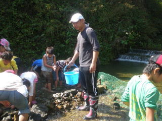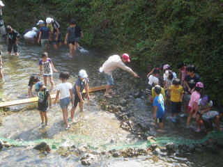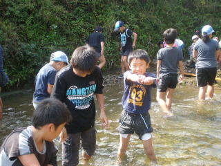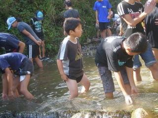 | 10月16日(日)上川口学区で「ますつかみ&川あそび」がありました。 とても良い天気に恵まれた中、子どもと大人合わせて、約35名の参加がありました。 子ども達は、冷たい川の水にも負けず、手づかみでマスを捕まえていました。 大人の中にも、生きて泳いでいる魚を捕まえるのは初めてという人もいたでしょう。 または、「こいつ、塩焼きにしたら美味いだろう」なんて考えていたのかな 生きた魚は、ツルツル滑り、なかなか捕まえにくいです。 子ども達には感じて欲しい。 川に入って遊べることのありがたさ。 魚を鷲づかみできるという環境の素晴らしさと川の美しさ。 そして、これからもこの環境を壊すことなく、川をキレイに 維持していこうという気持ちを持ち続けてください。 |