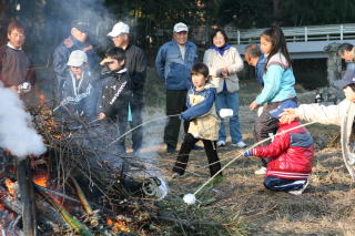 | 1月12日(月)、上川東部会館西の河原でめだかの学校『どんど焼き』がありました。 どんど焼きは、お正月に飾ったしめ縄、門松、かきぞめやお札などを焼いて、 その火で焼いた繭玉を食べて、無病息災・豊作を願います。 お正月に迎えた歳神様が、この火と煙に送られて天にもどると考えられているそうです。 以前は小正月と呼ばれた14日前後にされていたそうですが、 今では三が日が終わった次の日曜あたりにするようになりました。 この日上川小学校の子ども達が参加した上川東部会館西のどんど焼きは、 地元の秋山さんを中心に昔から行われている行事で、その姿も本格的です。 子ども達は、それぞれが家から持ち寄ったお正月飾りやかきぞめを一緒に焼き、 PTAの役員さんが前日作った繭玉を焼いていただきました。 地域の方々が持ち寄る繭玉はあんこ入りでとても大きい。 PTAの方々の繭玉は普通の大きさなのに、地域のひとたちに「まあかわいい」って言われていました。 PTAの役員さんが作ったヤナギはまた本格的。持って帰って魔よけにするそうです。 時折起こる大きな音や火の熱さに驚きながら火をみつめ繭玉を焼いていた子ども達。 今年一年良い年になりますように。 |