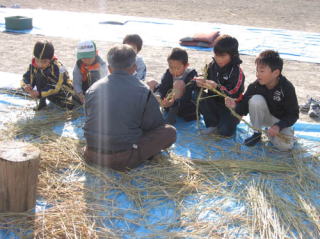 | 12月1日(土)、上川口小学校でめだかの学校『ゆずり葉のつどい』がありました。 ゆずり葉は、 春新しい葉の出現をみとどけてから老いた葉がはらりとおちていくといわれています。 今回は第21回。今回も、ゆずり葉のように年長者から若いおかあさん方へ、そして子ども達へ、 伝承遊びや生活の知恵をあとへ引き継ぎ絶やさないという気持ちを込めて 地域の多くの方々の協力をいただいて行われました。 前日は寒くて天候が心配されましたが、当日は暖かな小春日和となりました。 子ども53人、大人55人、計108人でのにぎやかな行事になりました。 もちつき、しめなわ、竹細工、竹馬やおはじき、ベーゴマやめんこ。 なつかしい遊びが揃いました。 PTAのみなさんにはトン汁も作っていただき、 心もおなかもいっぱいになってとっても楽しい集いになりました。 |