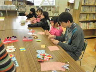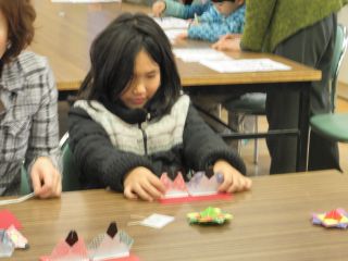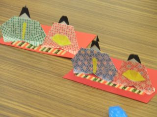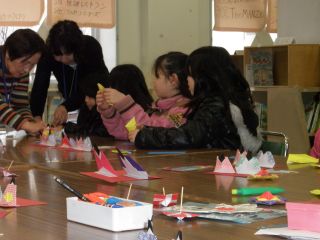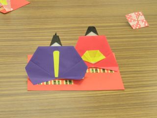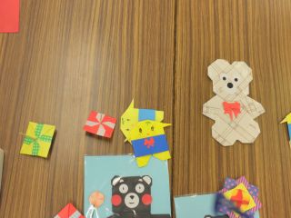 折り紙教室はおひな様を始め、熊のぬいぐるみ、くまモンやふなっしー等、