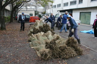 ![]() 田んぼから運ばれた稲。しっかり乾燥しています。 |