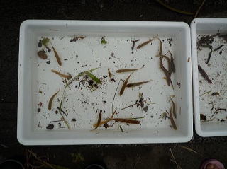 ![]() Bチームの収穫物。どじょうもいるよ。ヤゴも。 |