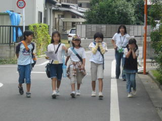 | 10月13日(土)川口小学校で、ピーポくんの家ウォークラリーがありました。 エントリーしたのは、下は1才から上はおじいちゃんまで67人、16チーム。 ともだちチーム、きょうだいチーム、親子チームとさまざまな顔ぶれがありました。 本当は9月29日の予定だったんだけど、雨だったので今日になりました。 朝は曇り空で涼しいくらいだったけど、みんなが歩いて帰ってくる姿は上着を脱いで腕まくり。 暑いくらいの陽気になりました。 川コース、口コース、小コースの3つのコースを選んでエントリーします。 それぞれのコースは約1時間半ぐらいの所要時間、約16軒のピーポくんの家をまわります。 お家の人に会えたらまずあいさつといつものお礼を言います。 お家の人がクイズを出してくれるので、考えます(むずかしいぞ)。 違う答えを書いちゃうと、お家の人が思わず「違うよ」なんてヒントくれたりします。 そんなことをしながらピーポくんの家のおうちの人と交流できるってとても嬉しいことですよね。 この実施には、多くのおかあさん方のフォローも完璧でした。 いろんな温かいもの(心)をいただいて、学校へ帰るころにはぽかぽかになっていました。 みんな、感謝の気持ちを伝えられたかな? 今日覚えたお家の人の顔を見かけたら、迷わずあいさつしようね。 |