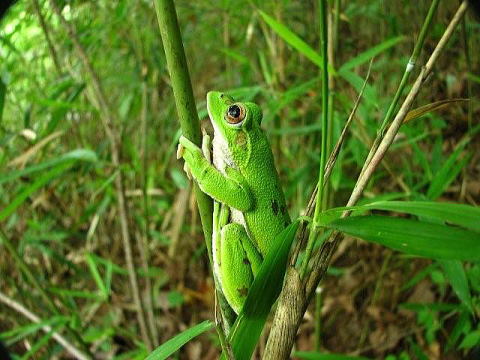 2008年6月8日のモリアオガエルの卵。画面中央のやや上にある白いのがそう。 | |