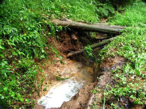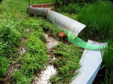 畦が壊れ、ちょろちょろだった小川に轟々音を立てて水が流れています。
