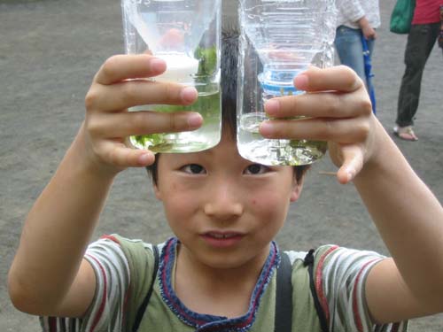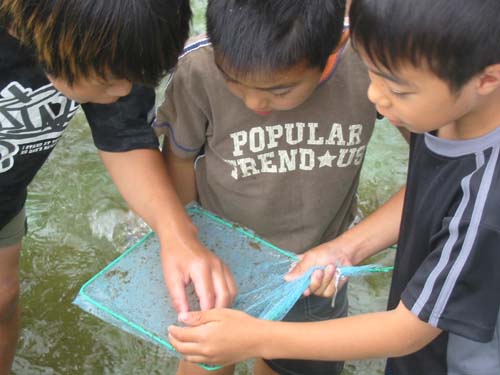 | 6月9日(土)川口小学校で、子どもと大人合わせて78名が参加して、『ヤゴ救出作戦』をしました。 去年の夏以来そのままだったプールに果たしてヤゴはいるのかみんなドキドキ。 とんぼ博士の高橋先生と高野先生をお招きして、ご指導を受けながら、プールに入って網で探しました。 探す表情はみんな真剣そのもの。大人もこどももみんなでびしょぬれになりながら大健闘、 結果、シオカラトンボのヤゴが25頭、金魚の稚魚、おたまじゃくし、カエルなどなど、 いろんな生き物をプールから救い出すことができました。 そのあとトンボの紙芝居をみんなで見て、 希望する子ども達にはヤゴを家に持ち帰って育ててもらうことにしました。 学校にもシオカラトンボのヤゴと赤トンボのヤゴを飼育してもらうことになりましたので、 学校に行ったらぜひ見てくださいね。みんなで救出したヤゴたちです。 |