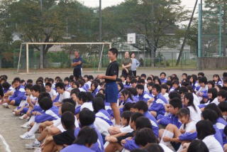 9月26日(土)、川口中学校に、あの北京オリンピック男子5000メートルに出場された松宮隆行選手をお迎えして、