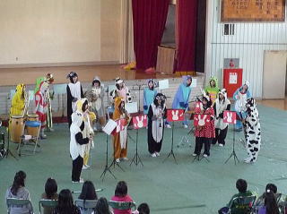 12月12日(土)、川口中学校で「わいわいミュージック」と「わいわいおたのしみパーティー」が川口児童館の主催でありました。