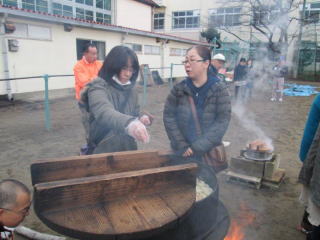 川中のPTAの役員の方々も、朝早くから豚汁の食材を持って協力してくれました。