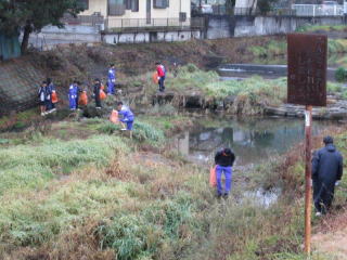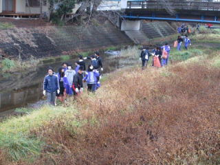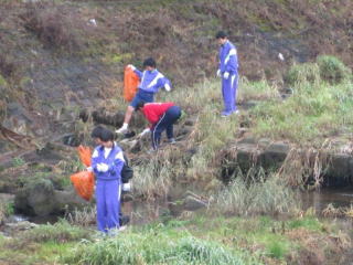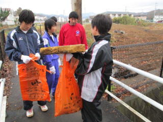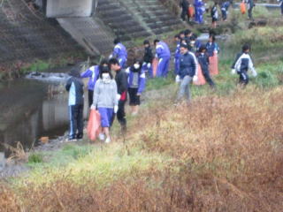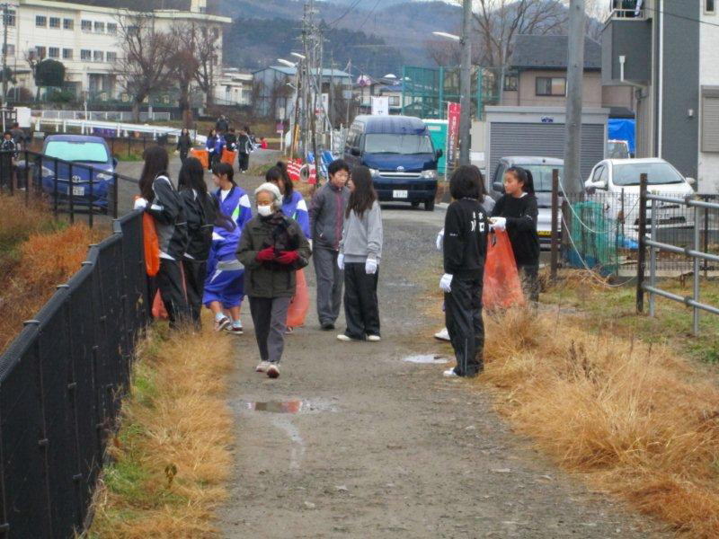 清掃活動は、川中の部活動を行っている生徒達、教職員、PTA、青少対、地元の方々、