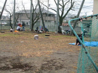 朝早くから、青少対の協力で豚汁作りのための釜戸や焚き木を用意しました。