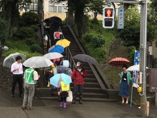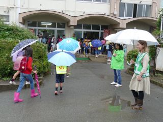 あいにくの雨でしたが、子ども達は元気いっぱいに登校しています。