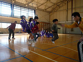 ![]() 大縄跳びは廻す側もタイヘンです。 |