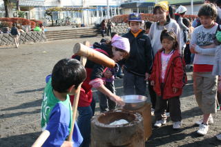 ![]() 上手に臼の真ん中をついてます。このお母さんの手つきが素晴らしかった。 |