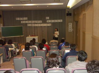 楢原、川口地区のPTAの方々を中心に45名が参加され、熱心に話しに聞き入りました。先生の語り口はとても優しく、時々おもしろい話をして笑いが起こることもありました。