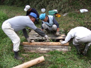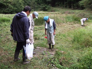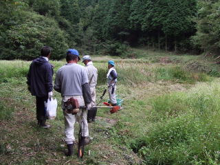 | 上川口地区の歓喜会の里山つくりの様子です。 歓喜会は上川口小学区にお住まいの方々で構成され総勢30名ほど。 活動は月に2回ほど学校内外の清掃などをされています。 今年度は特に、上川口小からの要請を受けて里山つくりを始めました。 写真は歓喜会の原島さんの撮影によるものです。 |